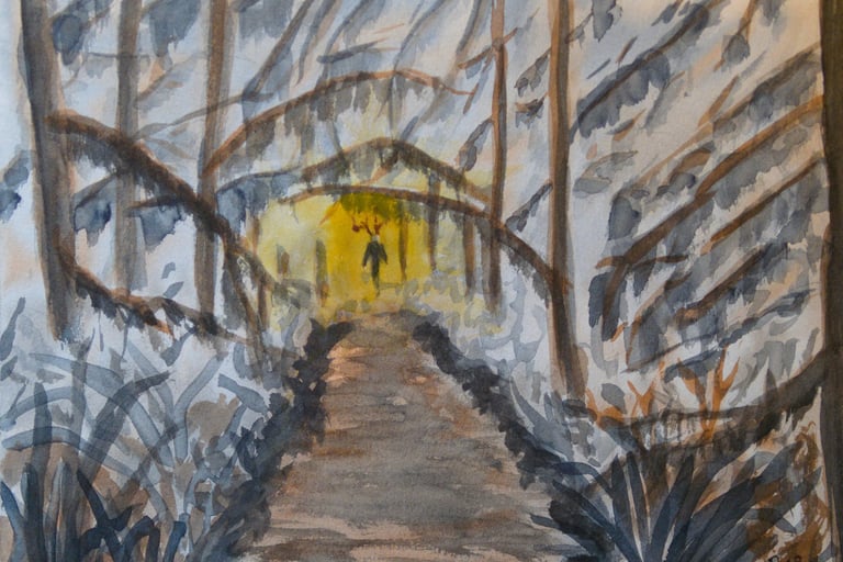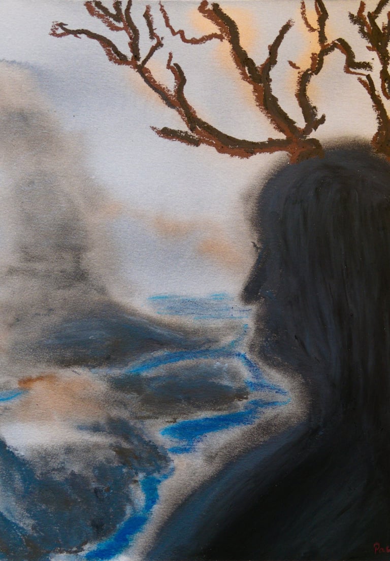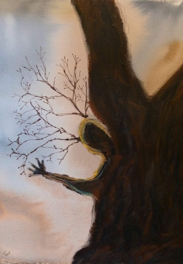 watercolor oil pastel and ink on paper
